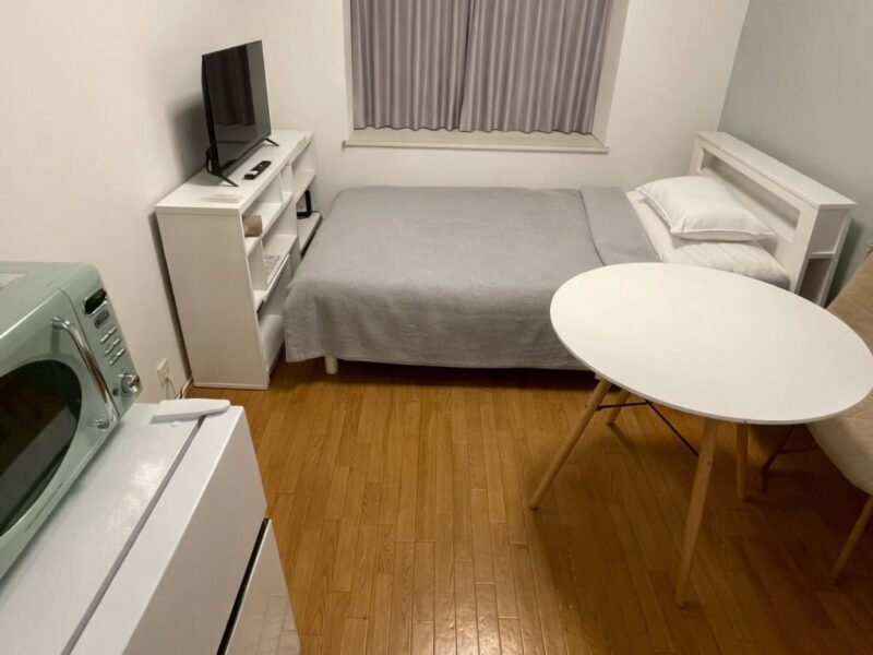 ベッド/シーツ、家電、椅子、テーブル、テレビ、調理器具や食器類など完備。